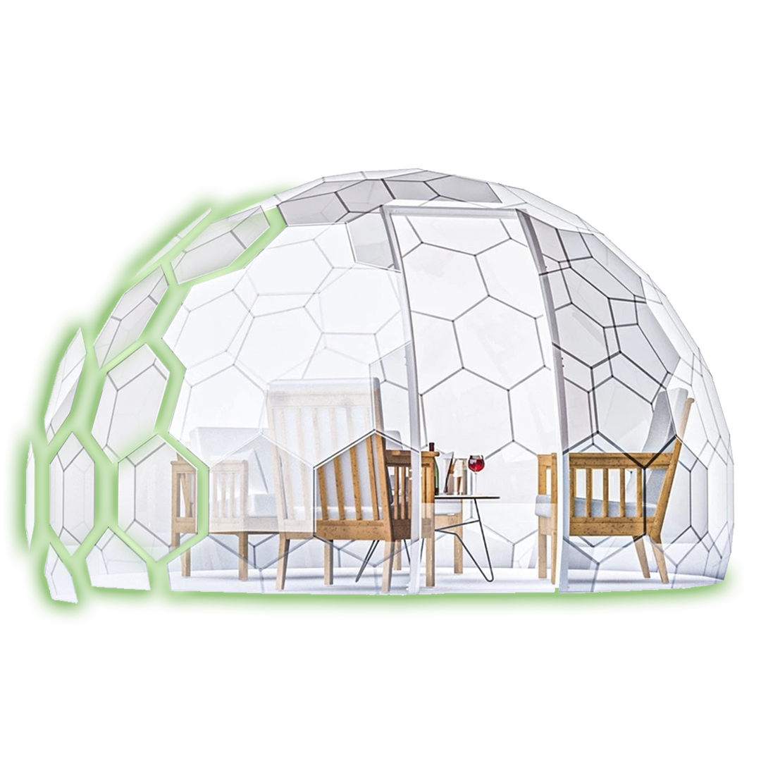 Ikki yildan ortiq vaqt mobaynida biz birinchilardan bo‘lib turar-joy va yozgi uylar, turli dam olish maskanlari, restoranlar, terrasalar, bolalar o‘yin maydonchalari, ko‘rgazma va savdo maydonchalari uchun geodezik gumbazlarni ishlab chiqarish va o‘rnatish bilan shug‘ullanmoqdamiz.